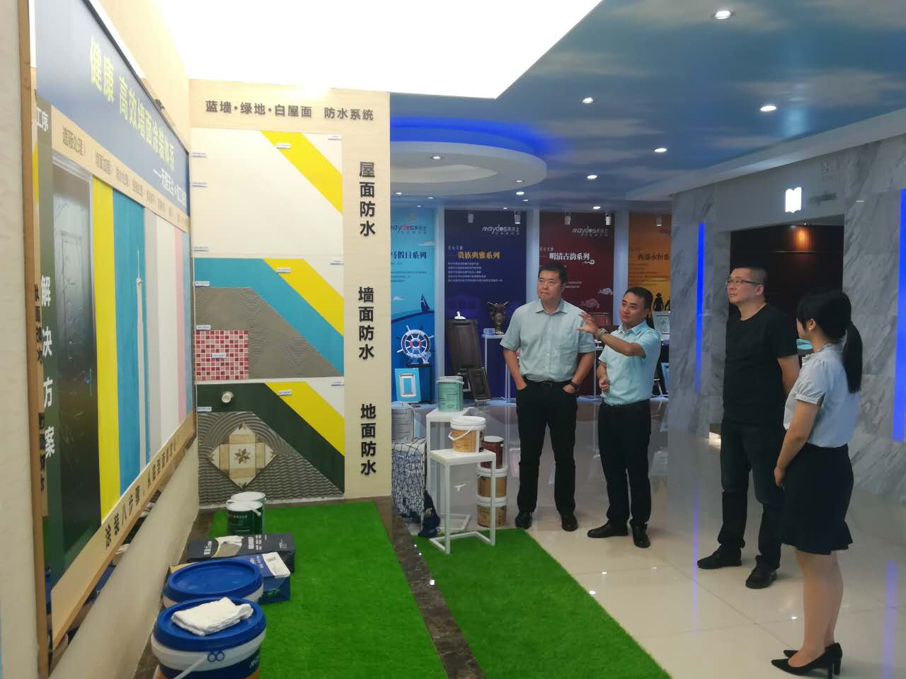 谢会长与王辉秘书长参观了2138cn太阳集团城荣誉墙与展厅,了解2138cn太阳集团城发展历史与企业实力,并对2138cn太阳集团城全面完整的涂装产品线给出高度评价。2138cn太阳集团城拥有多元化的涂料产品,墙面漆、家具漆、工程漆、基辅材、胶粘剂、涂装工具等等完整的涂装产品线,实现家装公司对墙面涂装产品的一体化采购与管控,降低整体采购成本与流程,更好的保证墙面涂装质量!