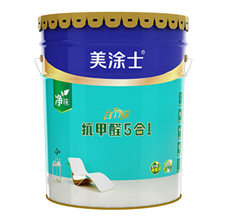 白竹炭抗甲醛 5 合 1 墙面漆是一款具有甲醛净化功能的环保产品,采用高效净化甲醛技术,可将室内游离甲醛分子分解为水分子。特别添加白竹炭因子,强力吸附空气中有害物质,持久清新。产品同时具有耐擦洗、防霉防潮、高遮盖力等性能,为您提供优异的墙面效果;同时在生产过程中未人为添加甲醛、苯系有害物质,让您持久拥有健康环保的家居环境。