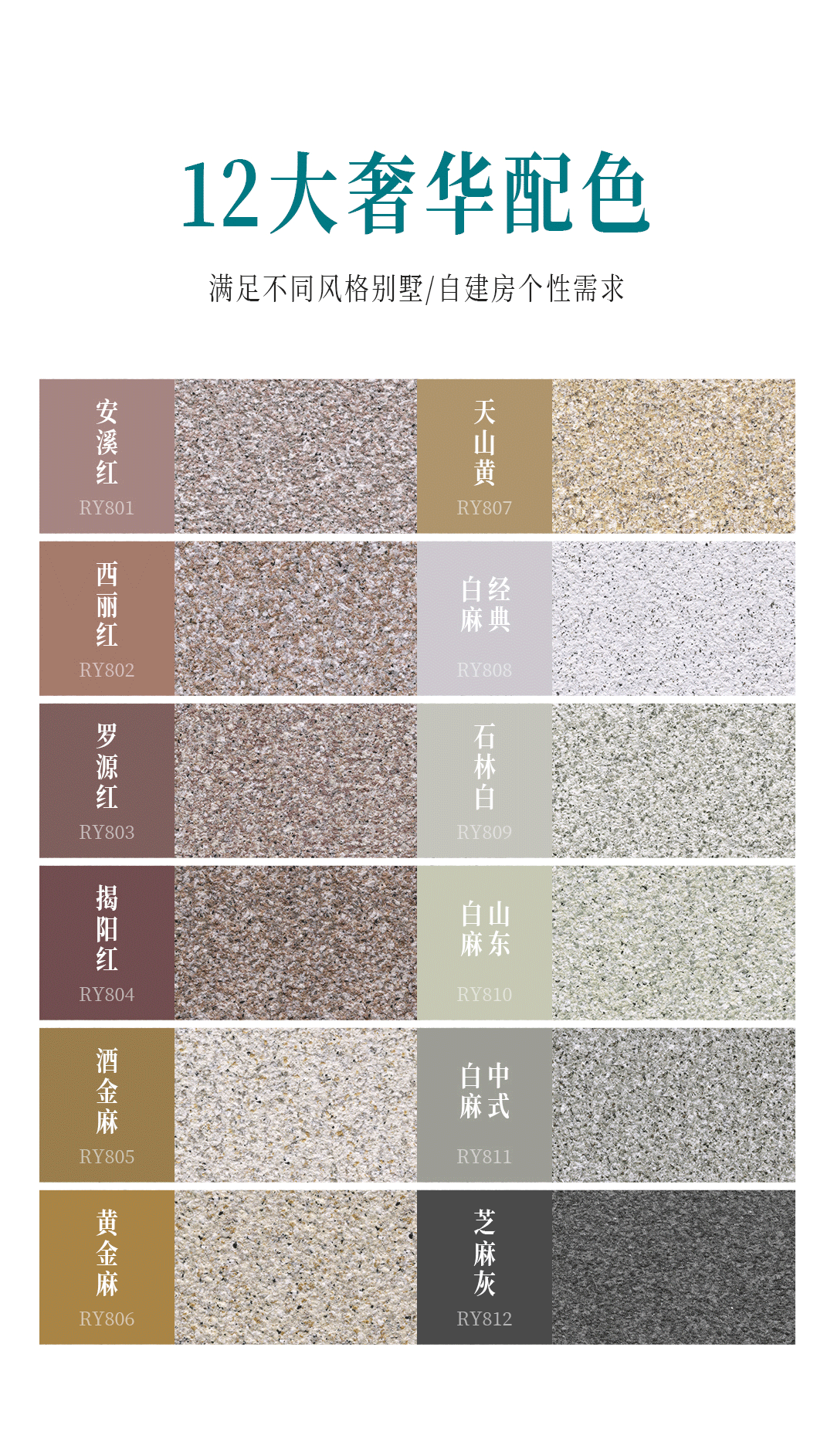 优选具有高耐候、超耐污的硅丙乳液为主要成膜物质,精选颗粒圆润、质地坚硬的天然彩砂,搭配水性环保型功能助剂精制而成的水性含砂多彩涂料。该产品拥有自清洁、超耐候、高硬度及优异的耐水白等优点,对比普通水包砂多彩,其彩点晶莹剔透,具有更高的仿石材效果,仿真度高达99以上。荣耀冠晶石是冠晶石体系的升级版,不仅可以得到类似荔枝面或菠萝面大理石的花纹色彩,同时对墙体有极好的保护和装饰效果。